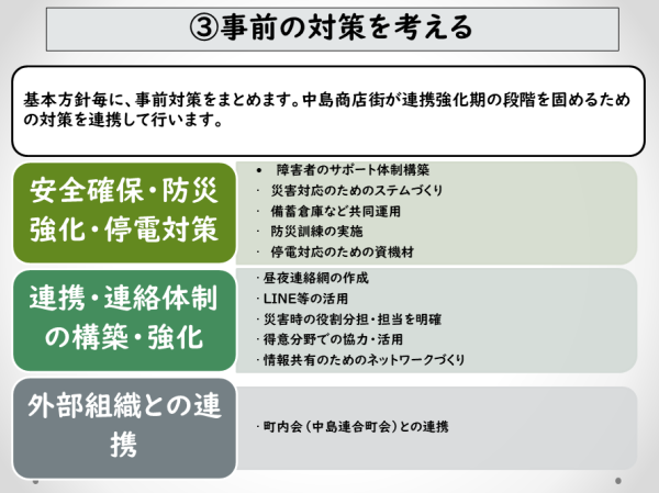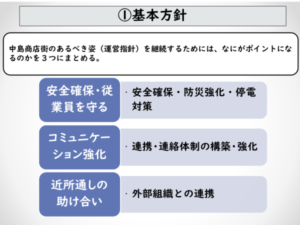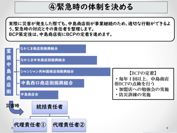 > 室蘭中島商店街のBCPを考える(基本方針・事前対策・緊急体制)